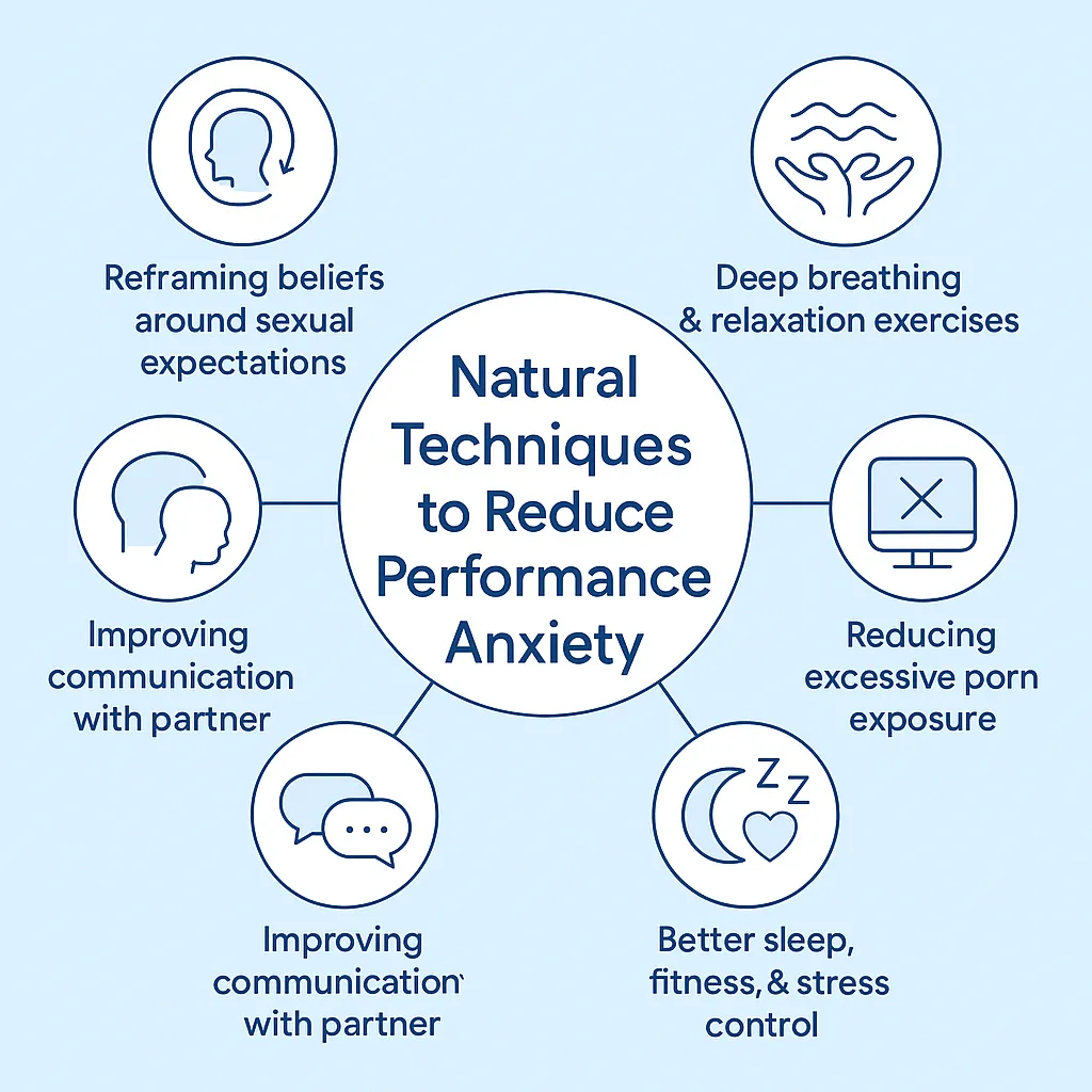 Performance anxiety refers to the fear or worry about one’s ability to perform during sexual activity. This can lead to problems like erectile dysfunction, premature ejaculation, or total avoidance of intimacy. These fears are often caused by past experiences, pressure to satisfy a partner, body image issues, or overthinking. It’s a mental barrier—but with the right treatment, it’s completely reversible.